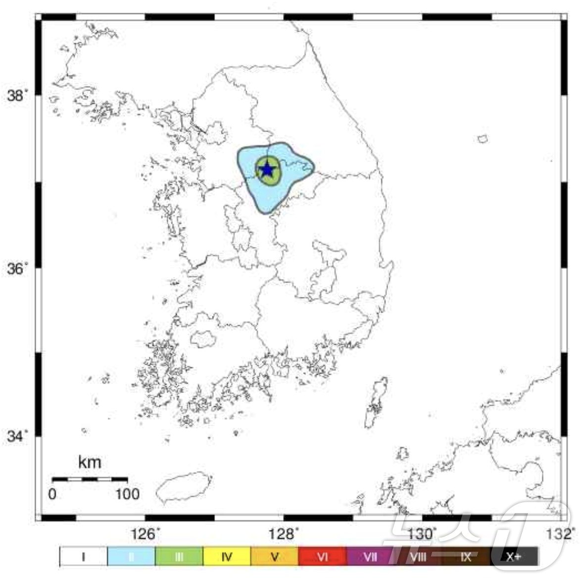 충북 충주시 북서쪽 22㎞ 지역에서 발생한 지진의 진앙은 북위 37.14도, 동경 127.76도, 깊이는 9㎞로 나타났다.