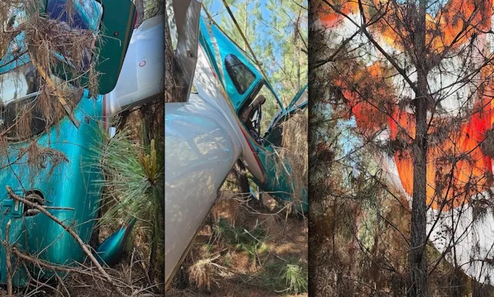 토요일에 타튼털 카운티에서 작은 비행기가 추락한 후 비행기에 타고 있던 부부와 그들의 반려견은 낙하산 덕분에 천만다행으로 목숨을 건졌다.
