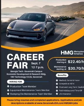 현대자동차그룹 메타플랜트 아메리카(HMGMA)가 9월 7일 조지아 공대 서배너 캠퍼스에서 채용 박람회를 개최한다.