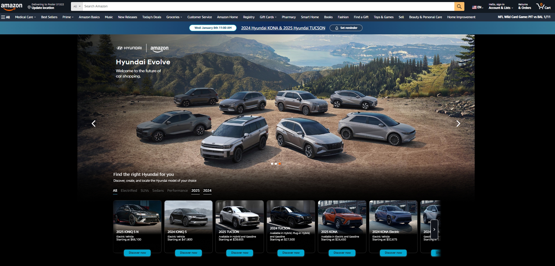 현대차는 지난 2023년 11월 로스앤젤레스(LA) 오토쇼에서 아마존과의 전략적 파트너십 체결을 발표하고 아마존을 통한 차량 판매 계획을 처음 밝힌 바 있다.