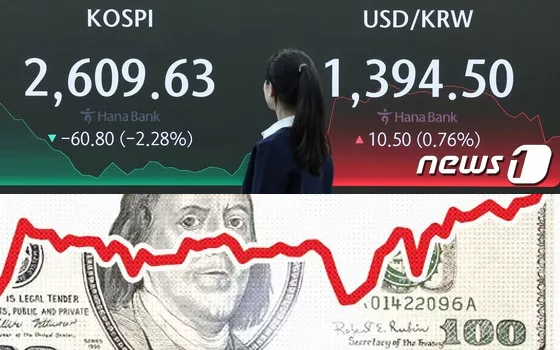 환율이 1400원까지 오른 건 지난 2022년 11월 7일 장중 고가 1413.5원을 기록한 이후 약 17개월 만이다.