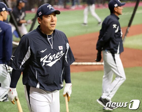 2023 월드베이스볼클래식(WBC)에 출전하는 대한민국 야구대표팀의 김현수가 2일 오후 서울 구로구 고척스카이돔에서 훈련을 하고 있다. 2023.3.2/뉴스1 © News1 김진환 기자 |