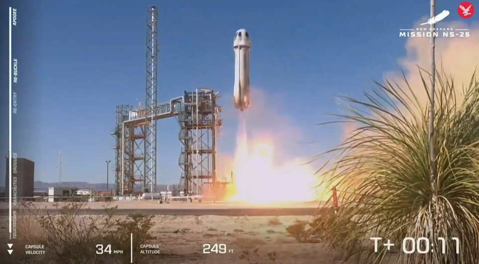 19일(현지시간) 로이터통신에 따르면 블루오리진은 이날 6명의 승객을 태운 로켓을 미국 텍사스주 벤 혼 인근 블루오리진 발사기지에서 발사했다. 지난 2022년 이후 약 2년 만이다.
