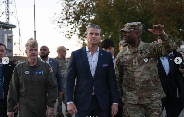 헤그세스 장관은 이날 소셜미디어 엑스(X) 계정에 “한국 측 파트너인 안규백 국방부 장관과 비무장지대(DMZ)를 방문해 한반도에서 군사 정전을 유지하고 있는 용감한 미군, 한국군, 유엔군사령부 병사들을 만났다”면서 이같이 밝혔다.