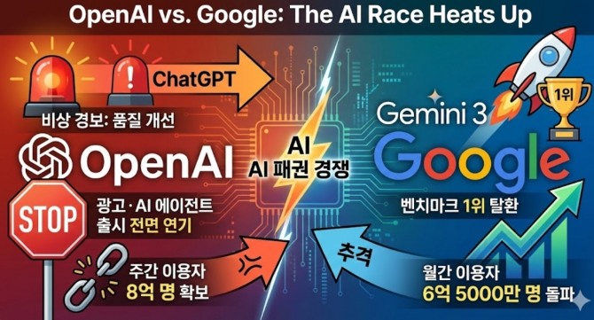 주간 이용자 8억 명 확보에도 광고·AI 에이전트 출시 전면 연기 구글 제미나이3, 벤치마크 1위 탈환…월간 이용자 6억5000만 명 돌파